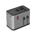 Porodo Mega Volt Universal Travel Adapter with 2300W GaN Charging Technology, Single USB-A & ×3 USB-C Ports, PD 70W, QC 30W, Multiple Device Charging, EU / UK / US Power Plugs, Universal Compatibility - Silver / Black