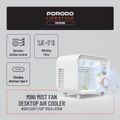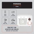Porodo Mini Mist Fan Desktop Air Cooler with LED Display & Knob Control, 250mL Tank Capacity, 2000mAh Battery, 7.4W Rated Power, Up to 7 Hours Working Time, USB-C Charging Port, 5 Speed levels, Instant Cooling Mist - White