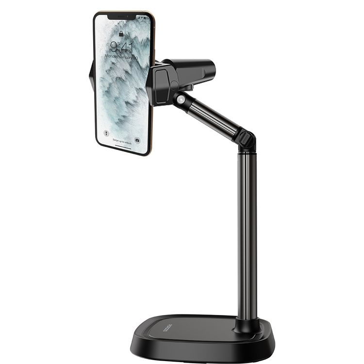 Porodo Multi-Angle Desktop Phone Stand with Flexible Viewing Angle, Secure Attachment, Up to 6.7" Devices Compatible - Black
