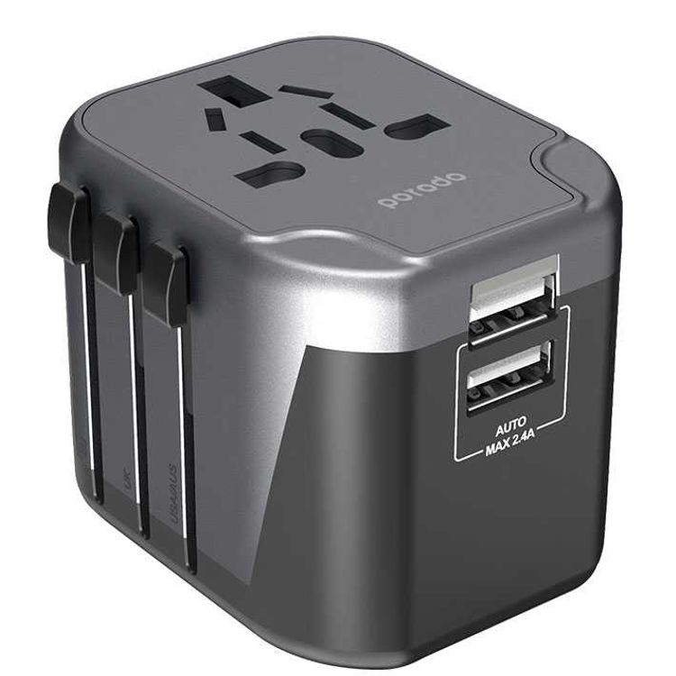 Porodo Dual USB Port Universal Travel Adapter 2.4A - Black