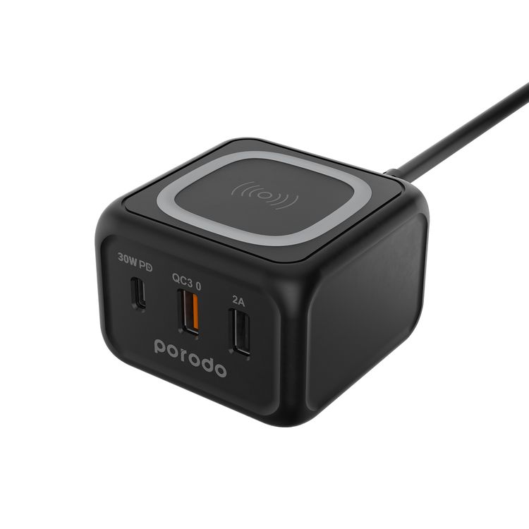 Porodo Desktop charger station comes with 3 USB ports and fast wireless charging with 15W. The USB ports are PD 30W / QC 3.0 USB-A Output and one 2A USB-A. You can charge your phone with the wireless fast charging ability, just put your phone and wait till this charger station, charge your phone as soon as possible. Porodo Desktop charger station is so compact that you can bring it anywhere with your self and its lightweight helps you to keep it anywhere like your bag, car dashboard, etc.