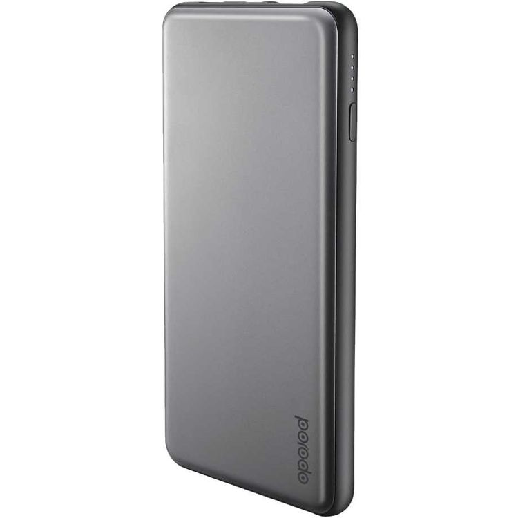 Porodo PD-PB110-GY USB & Type-C Power Bank 10000mAh with Cable Compatible for Lightning Devices - Travel-friendly Design - Slim Lightweight Portable Charger Powerbank - Gray