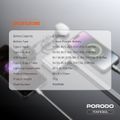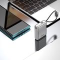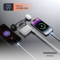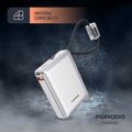 Porodo Petite 10000mAh Power Bank with Integrated Type-C & Lightning Cable, PD 20W, USB-A & USB-C Ports, Fast Charge Support, Digital Display, Universal Compatibility - Silver