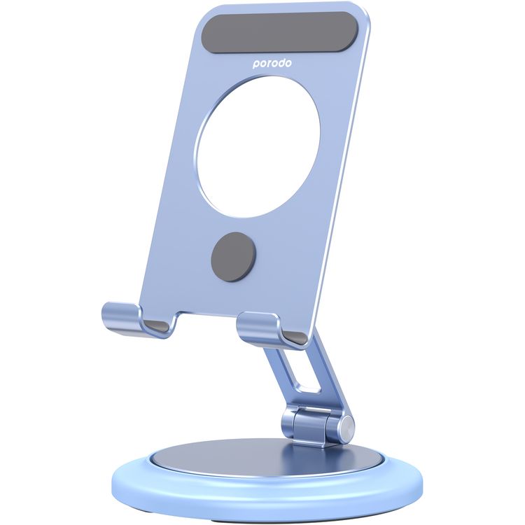 Porodo Phone Stand with Aluminum Alloy, 360° Rotation, Adjustable Angle - Blue