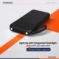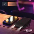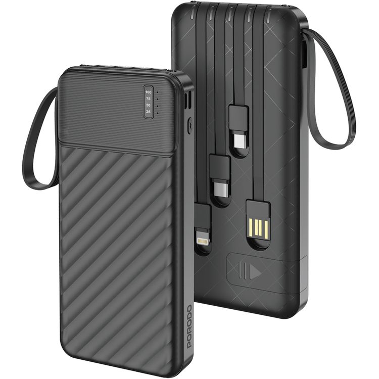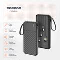 Porodo Piano 10000mAh Power Bank with Flashlight, Portable Handle, Phone Stand, 4 Integrated Cables, USB-A & USB-C & Micro Ports, Fast Charge Support, Universal Compatibility - Black
