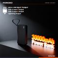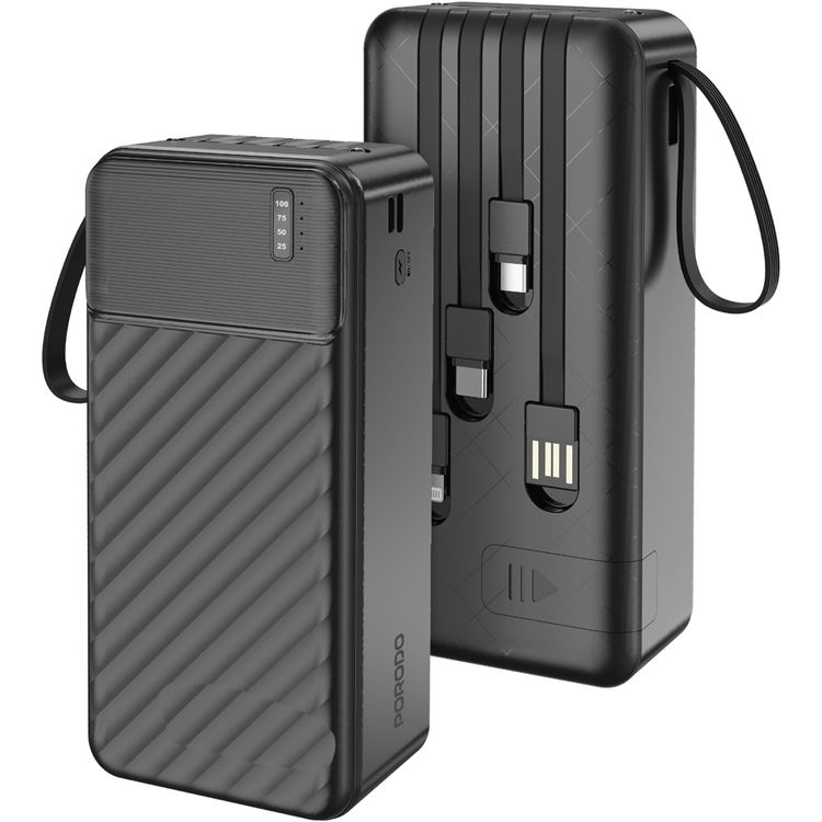 Porodo Piano 30000mAh Power Bank with Flashlight, Portable Handle, Phone Stand, 4 Integrated Cables, USB-A & USB-C & Micro Ports, Fast Charge Support, Universal Compatibility - Black