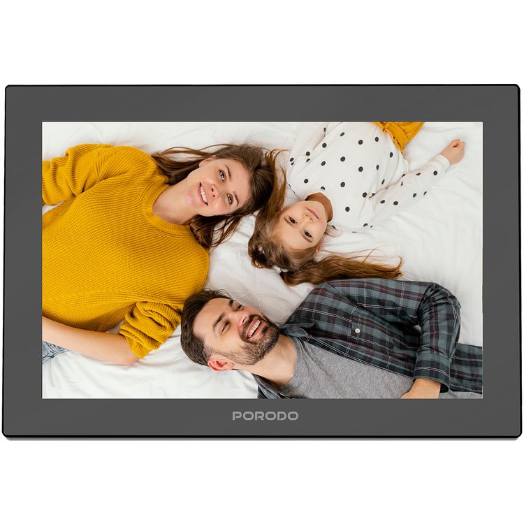 Porodo Pixelle 10.1-inch Smart Frame with Mirror Glass Technology, IPS Touchscreen, 800×1280 pixels Resolution, 1GB RAM, 16GB Internal Storage, Supports up to 128GB MicroSD External Storage, Instant Wireless Sharing - Black