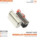 Porodo Pocket Volt 10000mAh Power Bank with Built-in Type-C Connector, 22.5W Power Delivery, 20W Max Lightning Output, Fast Charging Support, Compact Design, 15W Total Output - Black