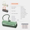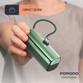 Porodo Pocket Volt 5000mAh Power Bank with Built-in Type-C Connector, 22.5W Power Delivery, Fast Charging Support, Compact Design, 15W Total Output - Green