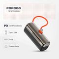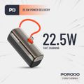 Porodo Pocket Volt 5000mAh Power Bank with Built-in Type-C Connector, 22.5W Power Delivery, Fast Charging Support, Compact Design, 15W Total Output - Black