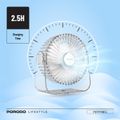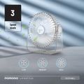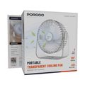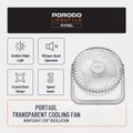 Porodo Portable Transparent Cooling Fan with Nightlight, 120° Oscillation, 3 Speed Levels, 3000mAh Battery Capacity, 3-9.5 Hours Working Time, 2.5 Hours Charging Time, ABS Material, Type-C Charging Interface, Whisper-Quiet Operation - Clear