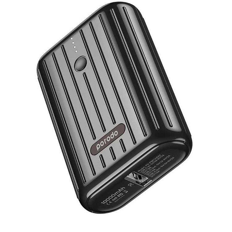 Porodo Power Bank 10000mAh QC3.0 with PD 20W, Dual Output, 3.5H Charging Time, Unique Design, Portable, Fast Charging - Black