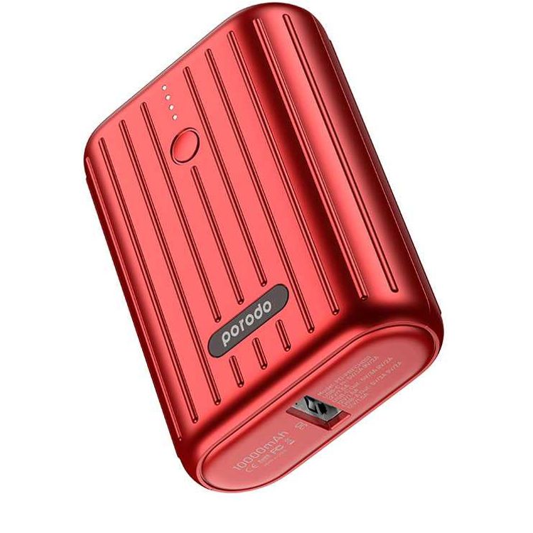 Porodo Power Bank 10000mAh QC3.0 with PD 20W, Dual Output, 3.5H Charging Time, Unique Design, Portable, Fast Charging- Red