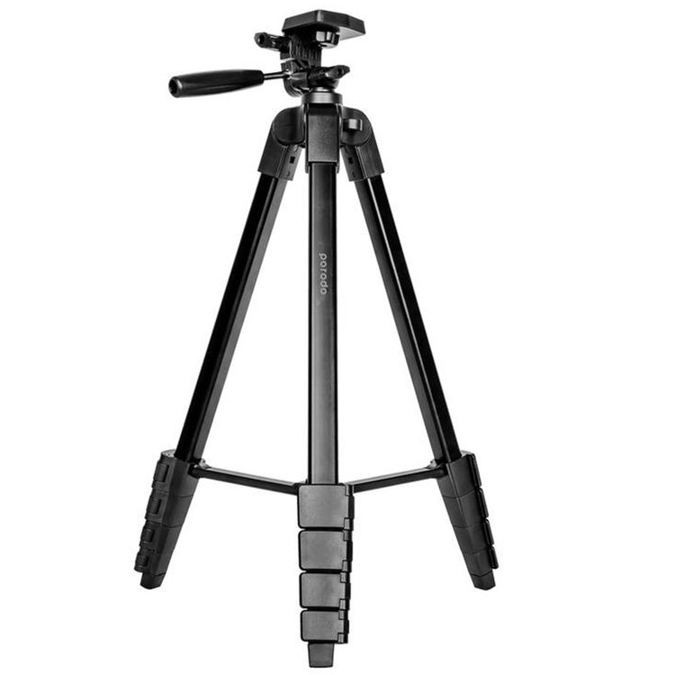 Porodo Professional Gimbal Tripod with Phone Mount, Broad Compatibility, Telescopic Design, Vertical Flip Knob, 1/4" Mount Screw, Up to 2kg Load Capacity, 171cm Length - Black