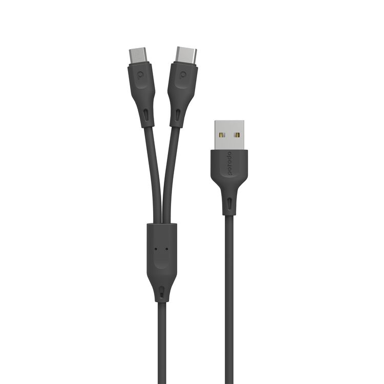 Porodo 2-in-1 USB-A Cable with Type-C & Micro USB Connectors, 1.2m Cable Length, TPE & PVC Materials, More than 5000 Bends Lifespan, 2.4A Current, Fast Charge & Data Sync - Black