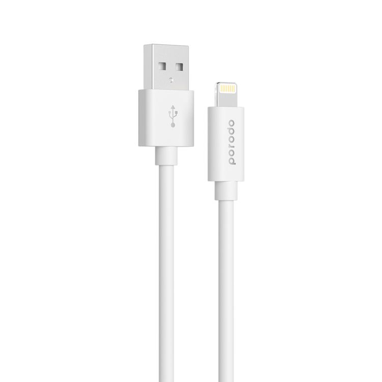 Porodo PVC USB-A to Lightning Cable with 2.4A Current, 1.2m Cable Length, Fire-Resistant Material, Fast Charge & Data Sync, Overheat & Overcurrent Protection - White