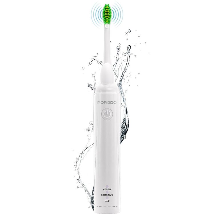 Porodo Rechargeable Electric Toothbrush with Dual Cleaning Modes, 250mAh Battery, USB-C Charging Port, 180 Days Working Time, Fast Recharge Time, Silent Operation - White