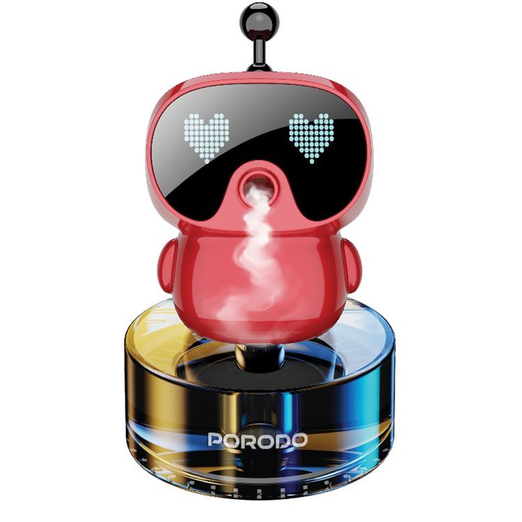 Porodo Robovibe Smart Car Aroma Diffuser with Animated Pixel, 4 Adjustable Fragrance Intensity Levels, 300mAh Battery, 50mL Oil Tank Capacity, USB-C Charging Port, Diffusing & Deodorization - Red