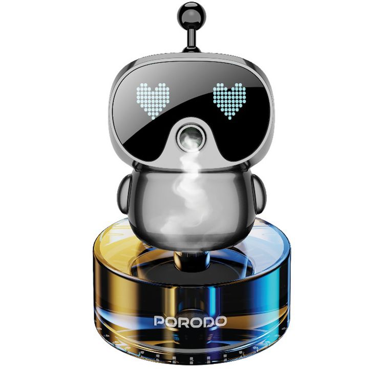 Porodo Robovibe Smart Car Aroma Diffuser with Animated Pixel, 4 Adjustable Fragrance Intensity Levels, 300mAh Battery, 50mL Oil Tank Capacity, USB-C Charging Port, Diffusing & Deodorization - Gray
