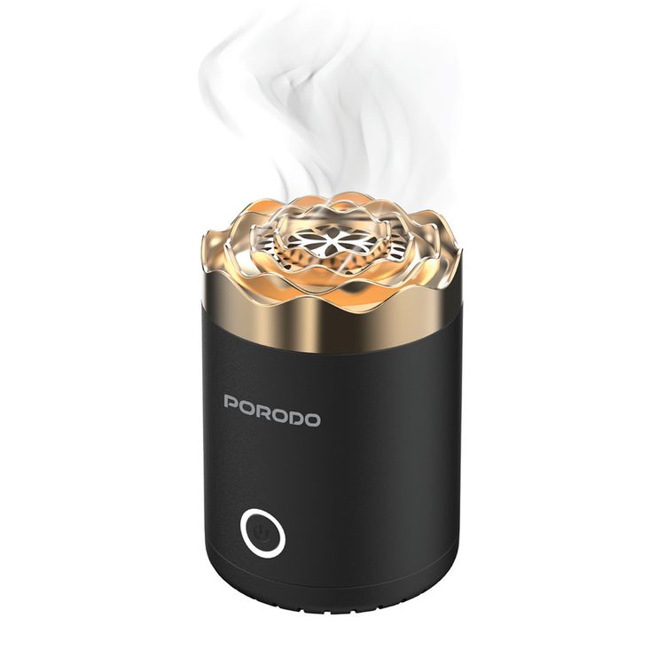 Porodo Rose Mini Incense Burner with 90 Seconds Auto-Off, 1800mAh Battery Capacity, Type-C Charging Port,×15 Full Burning Session Working Time, 1 Hour Charging Time, Whisper-Quiet Operation - Black