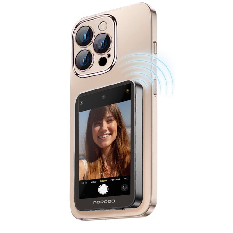 Porodo Selfie Screen Monitor with Magnetic Mirroring, 3.5 Hours Usage Time, 4.02" HD Screen, 1.85W Rated Power, 1800mAh Battery, 180° Screen Rotation, Compatible with iOS 9.0+ & Android 2.0+, 2.4G/5G Dual Band Wi-Fi Network - Gray