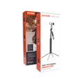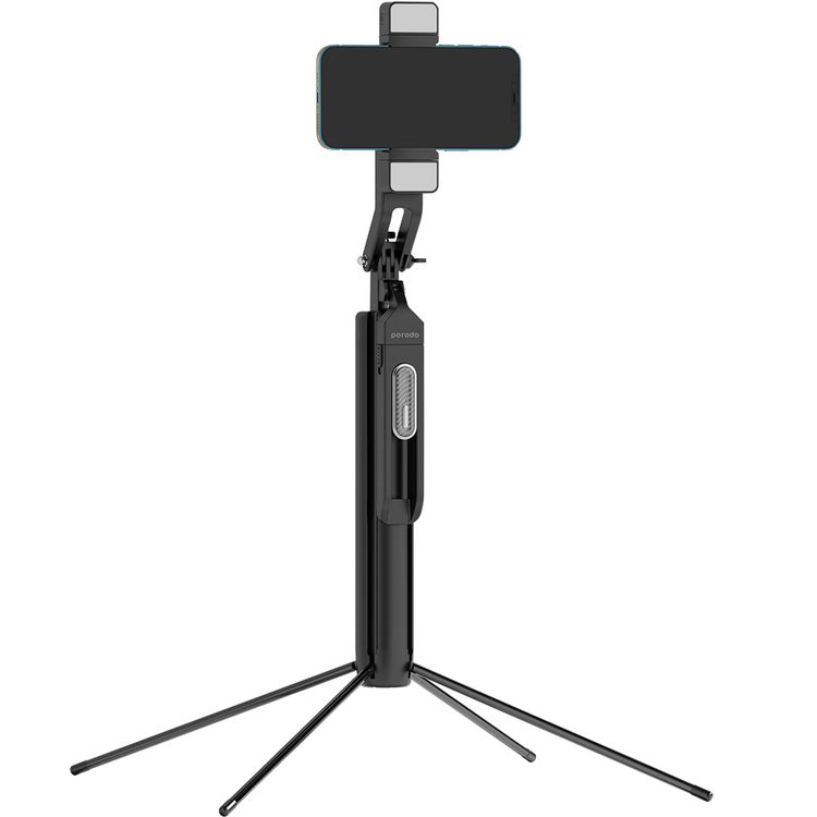 Porodo Media Pod with Folding Quadpod, 360° Tilt & Rotation Handle, 185cm Extendable Height, Dual Detachable Lights, Remote Control, Re-Chargeable Battery, Metal + ABS & Aluminum Material, Bluetooth Version 5.2, 55mAh Battery Capacity,4.7"-7" Mobile Compatibility - Black