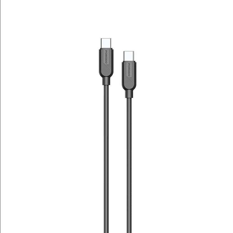 Porodo Silicone USB-C to USB-C Cable with Data Transfer, PD60W Fast Charging, Rapid Data Sync, PTE + Silicone Material - Black