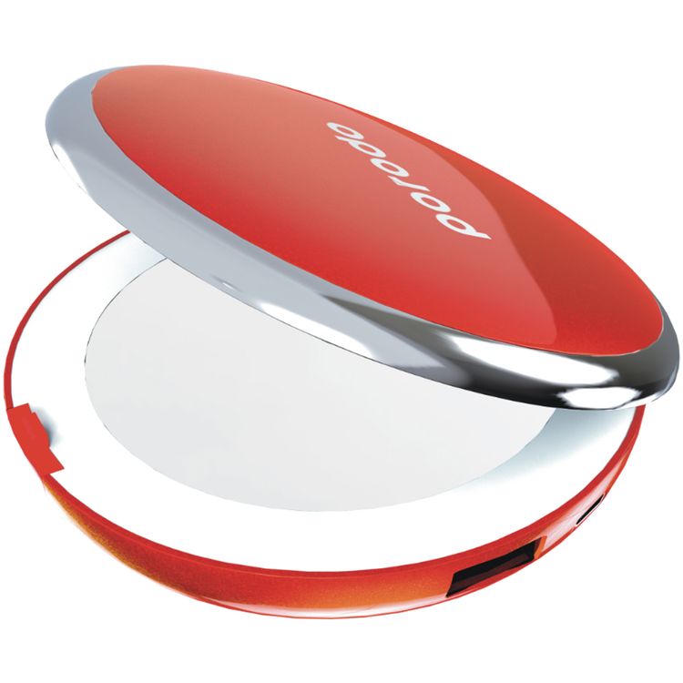 Porodo Mirror Power Bank 4000mAh Battery Capacity with 3 Levels of Brightness, Compact Design, Fast Charging, Overheating Protection, 2x Magnified Glasses, Digital Display - Red