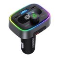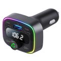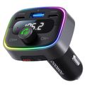 Porodo Smart Car Charger FM Transmitter with Dual PD 30W, Bluetooth 5.4, USB Disk Reading, Car Battery Voltage Display, Crisp Mic, Bass Boost Sound, LED Ambient Light, and FM Audio Streaming – Black