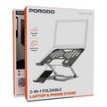 Porodo Smart Folding Multi-Device Stand with Phone Holder, Carbon Steel & Silicone Rubber Material, 10-17" Devices Compatible, Adjustable Height & Angle, Folding Design, Non-Slip & Secure - Silver