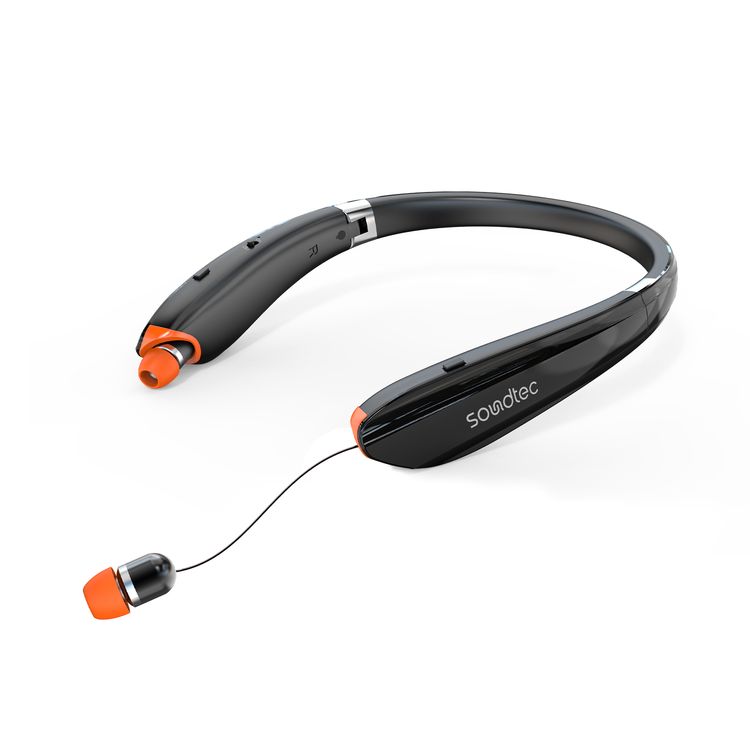 Porodo Soundtec Echo Flex Retractable ENC Neckband with Folding Design, Crystal Clear Audio, High Clarity Mic, Bluetooth V5.2, Multi Point Connection - Black