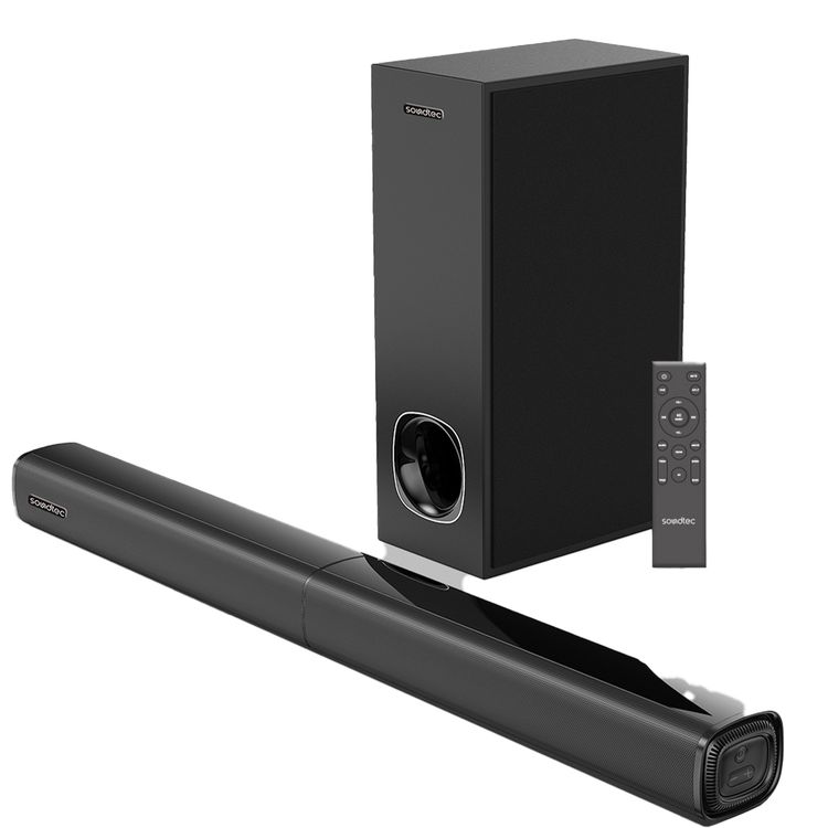 Transform your home music with the Porodo Soundtec 2.1CH Bluetooth Soundbar Max System, which includes a powerful 5.25-inch subwoofer that boosts bass depth for a fully immersive experience. Its innovative, removable design allows you to customize the arrangement to your space, whether you mount it on a wall or place it next to your TV. The 100W output produces powerful, booming sound that fills the room, ideal for music, movies, and gaming. With a variety of connecting options, including AUX, optical, and HDMI (ARC), the soundbar easily interacts with your devices. The elegant black finish gives a stylish, modern touch to your home entertainment system, and the accompanying remote provides easy control over settings. For people who appreciate both audio quality and flexible design, the Porodo Soundtec delivers a premium experience.