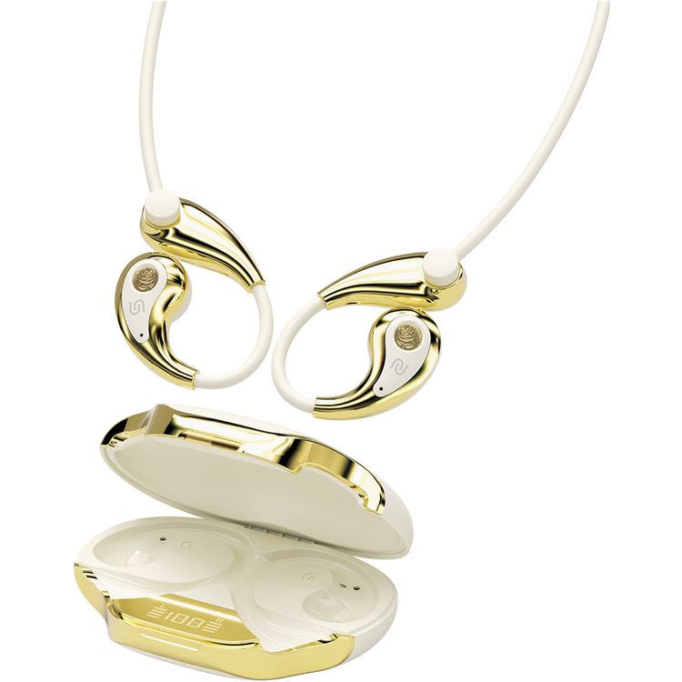Porodo Soundtec Bella Open-Ear Wireless Earbuds with Clip-On Design, Up to 1 Hour Charging Time, 5.5 Hours Play Time, Bluetooth Version 5.4, 10m Transmission Range, Ergonomic Fit, Touch Control - White