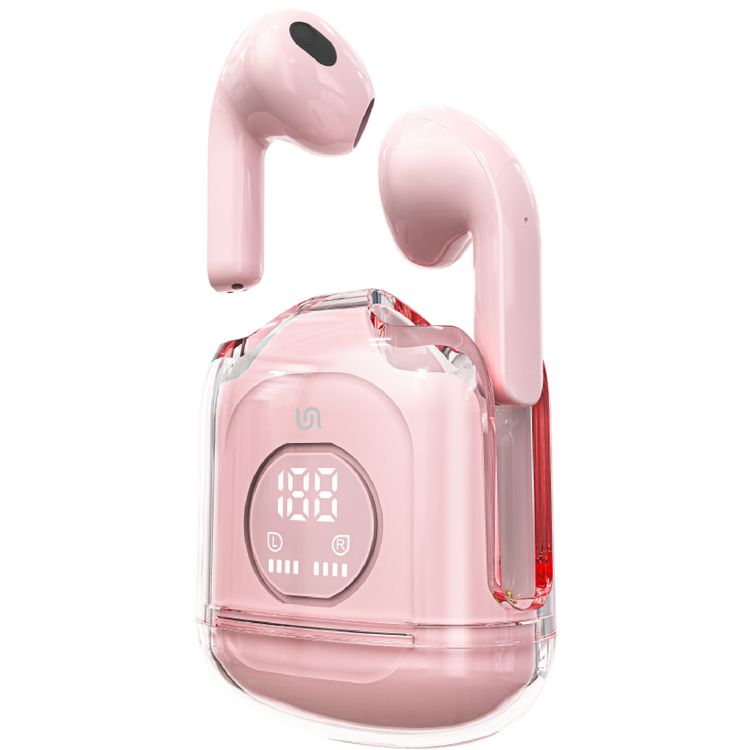 Porodo Soundtec Lucid True Wireless with Transparent Design, Digital Display, Ergonamic Design, Touch Control, 5 Hours Playtime, Type-C Charging - Pink
