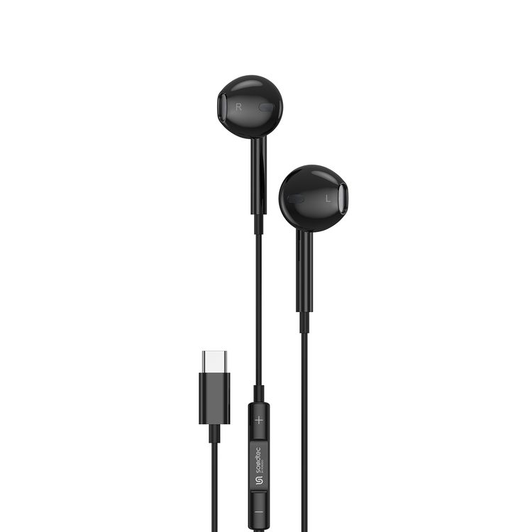 Porodo Soundtec Stereo Earphones with Type-C Connector, High-Clarify Microphone, ABS Material, 120 cm Tangle Free Cable - Black