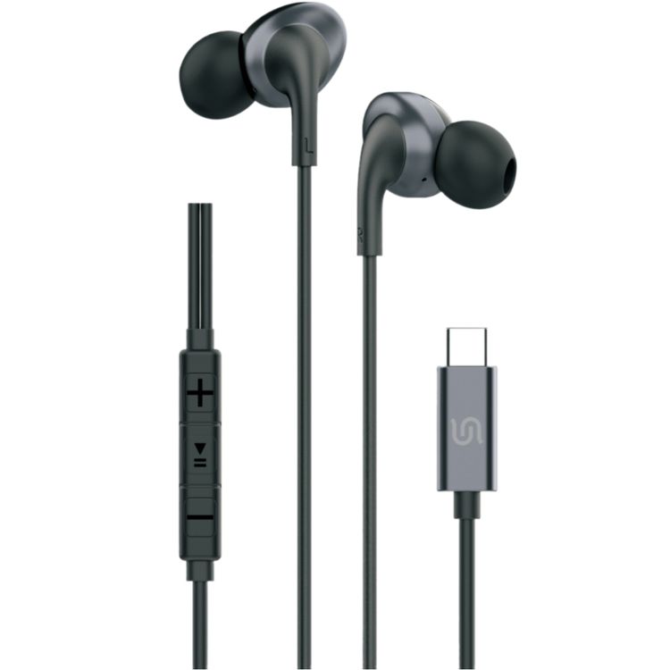 Porodo Soundtec Stereo Earphones, TPE + Metal + ABS Material, Type-C Connection, 1.2m Cable Length, High-Clarity Mic, Crisp Audio - Black