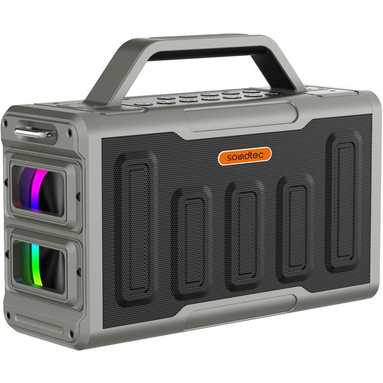 Porodo Soundtec Surge 2.2 Channel Party Speaker,100W, 8h Playtime, Bluetooth 5.0, Power Bank Function, 3.5mm Audio Cable, RGB Light, Multi-Band Equalizer, IPX5 Water Resistant - Black