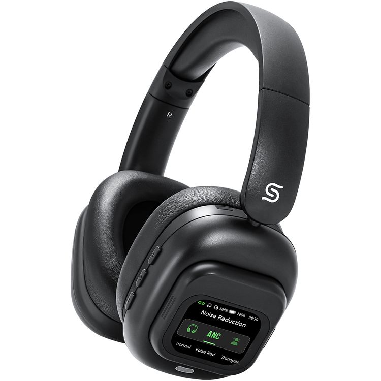 Porodo Soundtec Touchwave ANC Headphones with Detachable Touch Screen, 300mAh Battery Capacity, USB-C Charging Port, 2 Hours Charging Time, Bluetooth Version 5.4, 10m Transmission Range, Up to 29 Hours Play Time, Built-in Microphone, Immersive Audio, Compact Foldable Design - Black