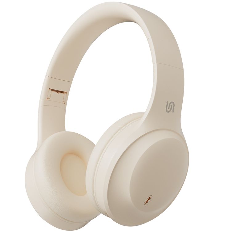 Porodo Soundtec Wireless Headphones with ENC & Low-Latency Gaming Mode, 400mAh Battery Capacity, 1.5 Hours Charging Time, 50 Hours Working Time, Type C Charging Port, Bluetooth Version 5.4, Voice Assistant - Beige