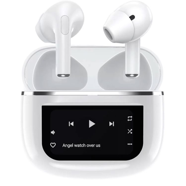 Porodo Soundtec Wonder TWS ANC Earphone with Touch Screen, Lightweight & Compact, Bluetooth V5.4, Remote Camera Trigger, Integrated Flashlight - White