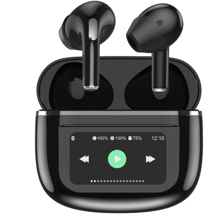 Porodo Soundtec Wonder TWS ANC Earphone with Touch Screen, Lightweight & Compact, Bluetooth V5.4, Remote Camera Trigger, Integrated Flashlight - Black