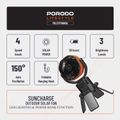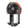 Porodo Suncharge Outdoor Solar Fan with LED Lighting & Power Bank Function, 3 LED Brightness Levels, 4 Speed Settings, Foldable Hanging Hook, 150°Auto Oscillation, Up to 30 Hours Working Time, 6000mAh Battery, 5W Rated Power - Black / Orange