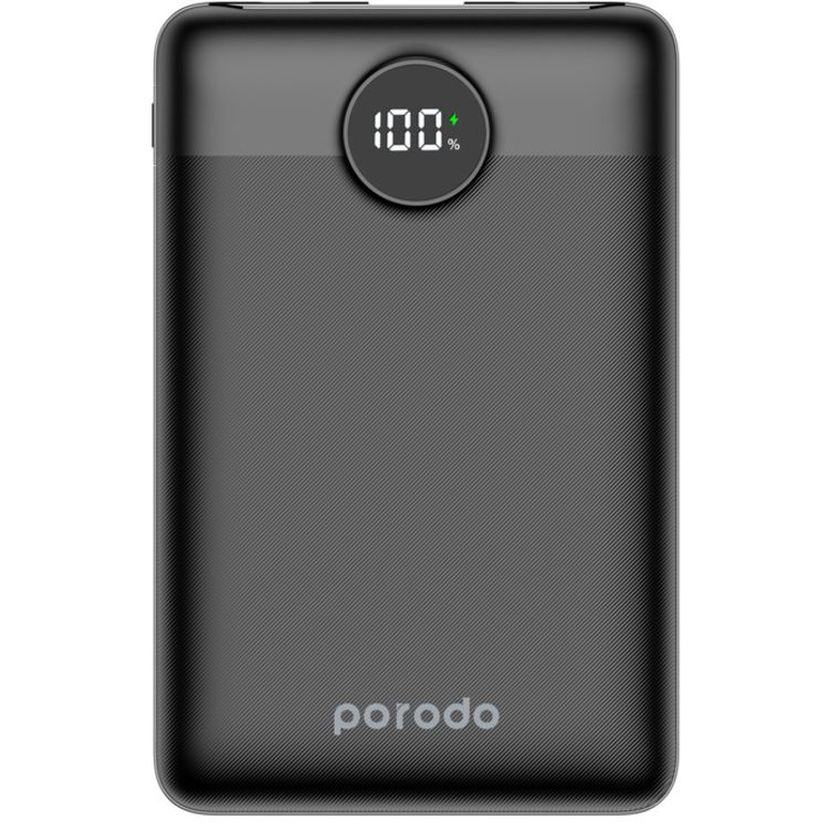 Porodo Super Slim 10000mAh Power Bank with PD 20W, QC3.0, USB-C & USB-A & Micro Ports, LED Display, Slim and Lightweight Design - Black