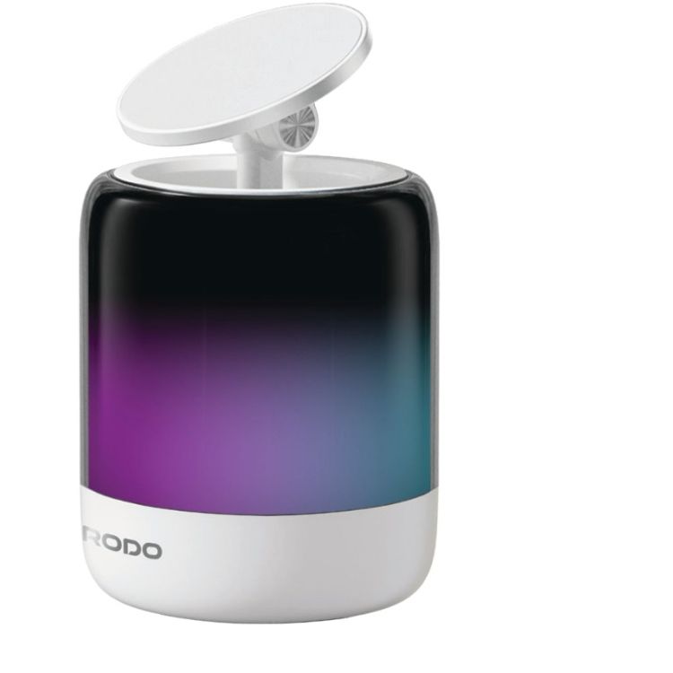 Porodo SyncGlow Speaker & Phone Holder with Rhythmic Lights, 500mAh Battery, Bluetooth Version 5.3, 150 Minutes Working Time, 360° Flexible Rotation, ABS & PC Material, Immersive Sound, 5W Rated Power - White
