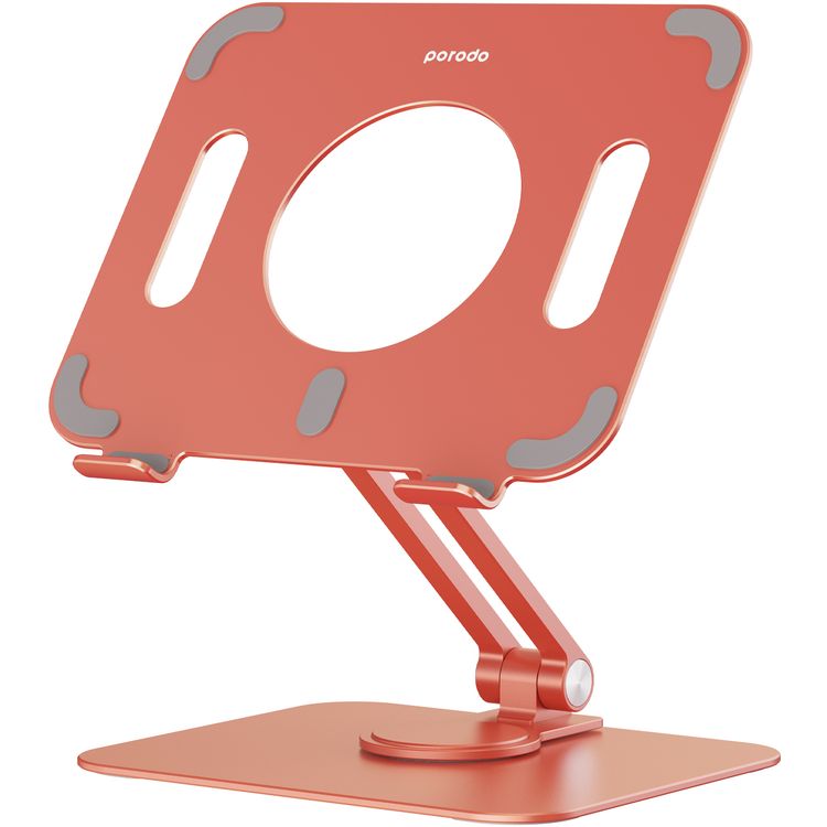 Porodo Tablet Stand with Aluminum Alloy Holder, Adjustable Angle, and 360° Rotation - Orange