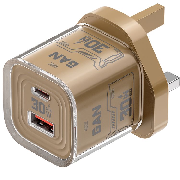 Porodo TEZCLARTÉ Quick Wall Charger with Dual Port Fast Charging, Flame Retardant Housing, Transparent Design, PD 30W USB-C Output, QC 20W USB-A Output - Khaki