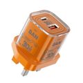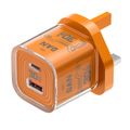 Porodo TEZCLARTÉ Quick Wall Charger with Dual Port Fast Charging, Flame Retardant Housing, Transparent Design, PD 30W USB-C Output, QC 20W USB-A Output - Orange