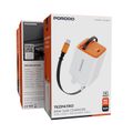 Porodo Tezpatro 65W GaN Charger with USB-C Retractable Cable, 1.5A Rated Current, 65W Power Delivery, 80cm Cable Length, Flame-Retardant Housing, Fast Charge Support - White / Orange