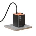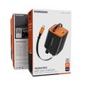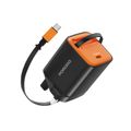 Porodo Tezpatro 65W GaN Charger with USB-C Retractable Cable, 1.5A Rated Current, 65W Power Delivery, 80cm Cable Length, Flame-Retardant Housing, Fast Charge Support - Black / Orange