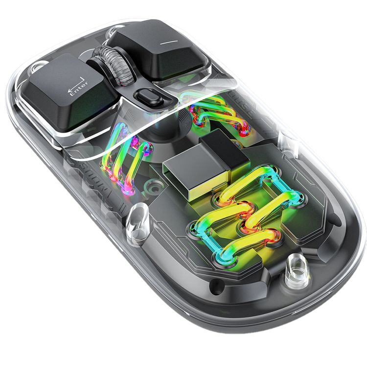 Porodo Transparent Dual-Mode Wireless Mouse with Adjustable DPI Up to 1600, RGB Lights, 400mAh Battery Capacity, Wireless 2.4 GHz & Bluetooth Connections - Black